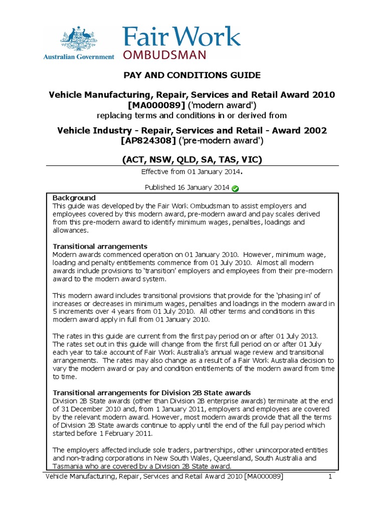 Pay And Conditions Guide Ma000089 2014 01 01 Pdf Apprenticeship Overtime